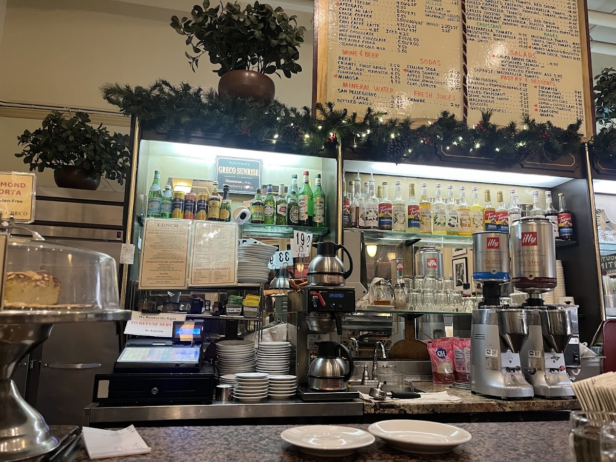 Caffe Greco is the sort of no-nonsense neighborhood cafe where locals come to enjoy solid coffee and a relaxed spot to linger, whether it's morning or late in the evening. Tucked into San Francisco’s North Beach on Columbus Avenue, the atmosphere is straightforward and welcoming—a mix of casual tables with enough room to spread out a book or laptop without feeling cramped. It’s the kind of place where you can comfortably settle in for a while, making it a favorite for people who want a quiet corner to read, work, or have an easy conversation over coffee.