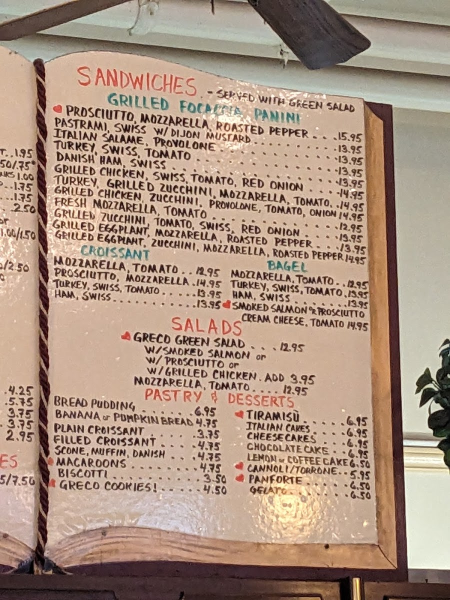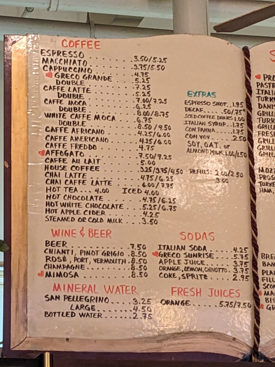 Caffe Greco Menu